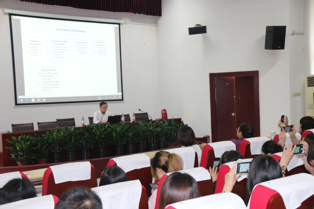 早在报告开始前一小时,pp电子学生便满怀期待,入场等待报告开始。在第一场报告上,陈教授向师生们介绍了四种不同类型的翻译技术(translation technology)以及它们各自的特征和目标用户。陈教授指出神经机器翻译(Neural Machine Translation)是最近流行的趋势,并向我们介绍了基于“云”的CAT系统发展的优劣势,在座师生都产生了强烈的兴趣。随后陈教授又对本地化(Localization)作出了系列介绍,报告最后介绍了语音翻译(speech translation)的发展,陈教授说语音翻译的发展会是一个复杂而漫长的过程,但在机器翻译领域中确实最具前景,也是最具市场的一个发展方向。在第二场报告上,陈教授着重讲述了计算机辅助翻译面临的挑战以及应用自动化的重要性。报告会上陈教授和我们畅谈翻译技术、CAT、本地化和语音翻译的现在和未来,在场听众无不聚精会神,生怕错过每一条重要信息。