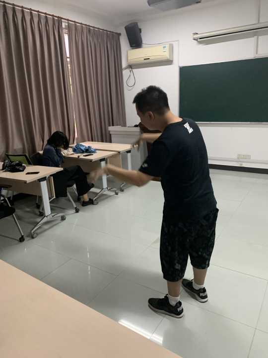 随后,我们进行了“沉默的007”这个游戏,大家围成一个圆圈,先挑一位同学指向另一位,然后被指向的同学需要指向下一位,直到第三位同学,这时他左右两位同学需要立即举起手来,并且在整个过程中,大家需要保持沉默,不能笑出声。然而,这个游戏其实并不“沉默”,一开始总有同学手忙脚乱,不该举起手的时候却把双手高高举起了,还有手举到一半意识到不应该自己举手,而手悬停在半空中的尴尬局面,噗呲一笑也在所难免。