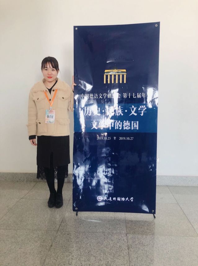 大连外国语大学德语系与中国外国文学学会德语文学分会于2019年10月25-27日共同举办了第十七届德语文学年会暨学术研讨会,会议在大连外国语大学召开。40余所中德高校的近百名专家学者围绕“历史、民族与文学——文学中的德国”这一主题进行了深入探讨,共同交流德语文学研究的成果和心得。pp电子文学文化与区域国别研究所的德语系老师孟小果参加了此次研讨会并做了学术报告。