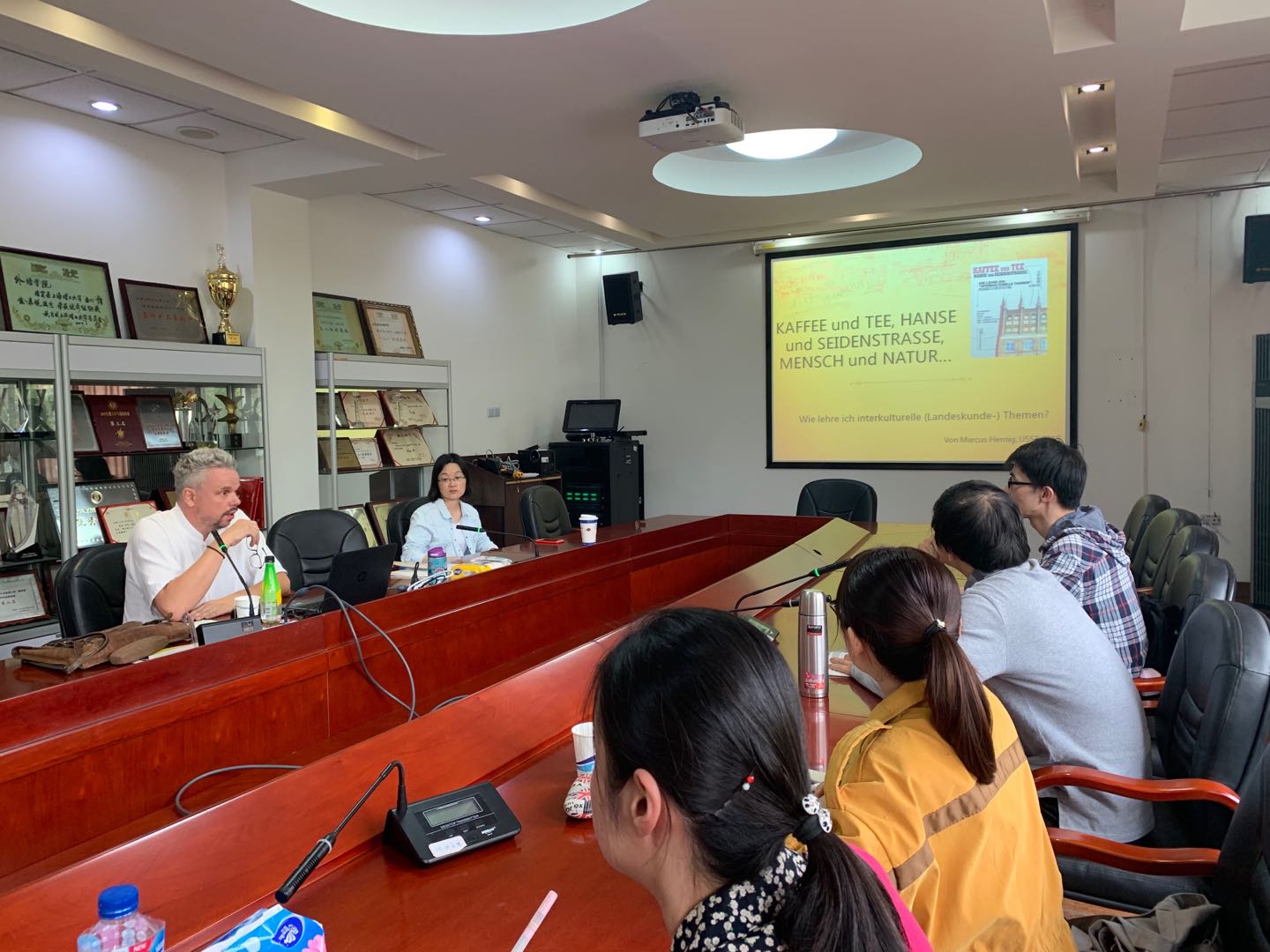11月9日下午,德语系邀请Marcus Hernig教授为pp电子师生带来了主题为“漫谈德国咖啡与中国茶文化”主题讲座。pp电子官方网站入口副院长陈琦教授,德语系师生及能动学院老师出席并聆听。