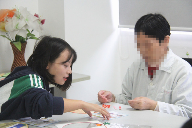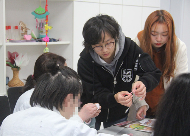 在医生、护士的带领下,师生们参观了杨浦区精神卫生中心的康复治疗科,并和病员们一起做诗词贴画手工。师生和病员们近距离接触、交谈,关爱之心油然而生。手工制作完成后,同学们逐一领读诗作,让病员们放松心灵,一起感受中华诗词之美。