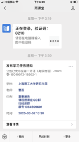 在上课之前一周,教师就搭建了QQ群,将选课的12名同学全部加入其中。在正是上课前一天,教师又采用雨课堂留言和QQ群留言,确保每一位同学都明确知晓上课时间和授课平台。