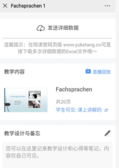本学期我承担《科技德语概论》课程。得益于2017-2018年入选校“翻转课堂”重点建设项目,该课程有着较好的在线教学的基础资源。根据课程特点,我提前了解线上教学资源和使用方式,克服技术难点,制定了详细可行的教学计划。基于雨课堂为主要教学平台,提前准备了微信群、腾讯会议等作为上课直播平台,同时将课件和阅读材料发布至雨课堂,两者结合,达到最佳效果。