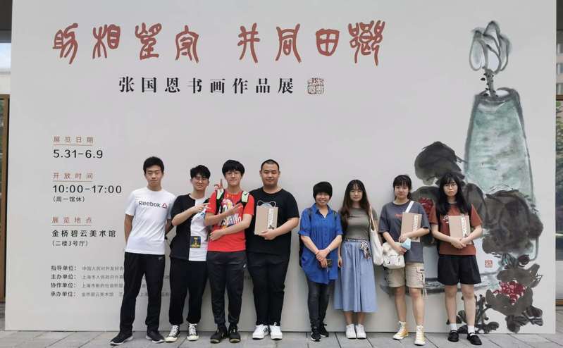 6月6日上午10点,为了使学生更加了解书画艺术在两国友好交流之中发挥的积极作用,并进一步加深学生对中日友好交流和培养国际视野的认识,在pp电子官方网站入口学生处以及日语系的支持下,日语系教师郭丽带领7名日语专业学生来到金桥碧云美术馆,参观中日交流“乡田同井,守望相助——张国恩先生书画作品展”。