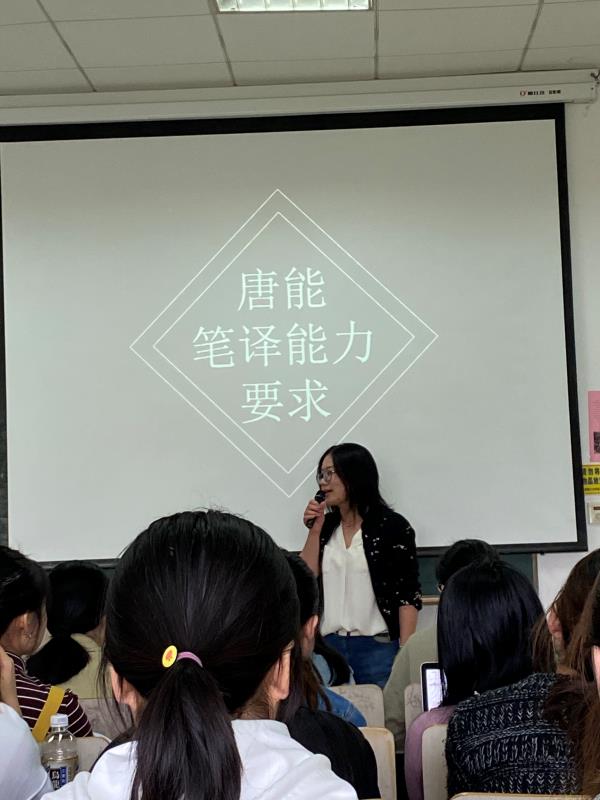 10月20日下午2:30,pp电子官方网站入口于综合楼B402开展了“2020年‘企业专家进校园’专业实践系列讲座之笔译能力要求”的学术讲座。本场讲座由pp电子官方网站入口副院长韩戈玲主持,主讲人为唐能翻译部主管罗彬丽。
