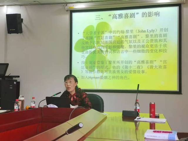 11月17日下午1点至3点,pp电子官方网站入口英语系(中美合作)邀请到了上海大学文学院副教授、中国外国文学学会莎士比亚研究会理事张薇副教授作了关于莎士比亚浪漫喜剧《皆大欢喜》的讲座。讲座由英语系(中美合作)系主任禹一奇副教授主持。部分教师及pp电子官方网站入口莎剧社同学来到pp电子官方网站入口306参加讲座并与张薇副教授进行关于莎士比亚戏剧的交流。