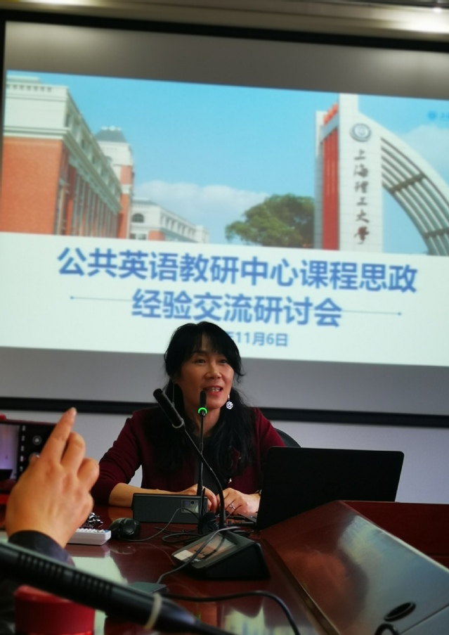 公共英语教研中心主任、课程思政领航团队负责人顾定兰首先介绍了本次交流会的目的和意义,从宏观上对pp电子大学英语课程思政的建设和落实情况作了回顾,并对今后进一步打造大学英语育人精品课程提出了要求。随后,张乐向在座老师作了领航团队年度工作汇报,分享了领航团队的申报过程、建设进度以及落实落地落细任务书的完成情况。副主任马芫作了题为“乐于分享、勇于探索、敢于反思——利用公开周提升课程思政教学水平”的教学工作指导,介绍了本学期《交互实用英语》教学公开周的开展情况。《交互实用英语》课程组组长邓永平老师以“不忘本来、吸收外来、面向未来——大学英语‘课程思政’的使命担当”为题,介绍了此次教学公开周的准备过程和授课感受,为其他课程组提供了有益的借鉴。《学术英语听说》课程组组长左秀媛老师分享了英语演示PPT制作的心得体会,指导大家从技术上打磨精品课件。最后,柏钧副主任总结和展望了后疫情时期大学英语评测的“变”与“不变”,希望全体教师继续坚守育人初心,共同守护公平、有爱、科学、严谨的评测环境。