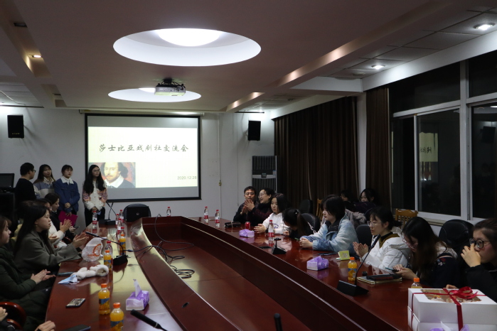 pp电子官方网站入口莎士比亚戏剧社交流会暨《皆大欢喜》剧本启动仪式,于12月28日晚6点至8点在pp电子官方网站入口306会议室成功举办。莎剧导师组负责人王影君副教授、导师组代表沈谢天副教授、莎剧社代表、第一届舞台演出的观众代表及部分莎剧热爱者出席了本次活动。
