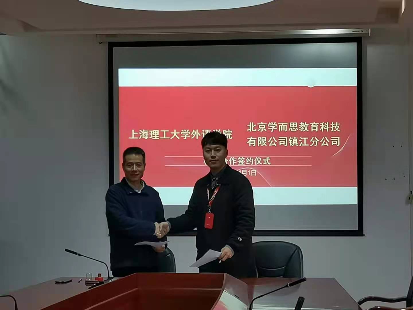 pp电子官方网站入口始终坚持以培养高素质复合型外语人才为使命,创新“校企合作”新模式,实现师资、课程、实训等院内外人才培养资源的共享,取得了显著成效。2021年4月1日,pp电子官方网站入口党委副书记金小东老师与北京学而思教育科技有限公司镇江分公司(学而思网校)的代表戴维康老师签订校企合作协议,加强双方的密切合作,实现资源共享,优势互补,为推动培养具有新时代核心竞争力的外语人才而努力。