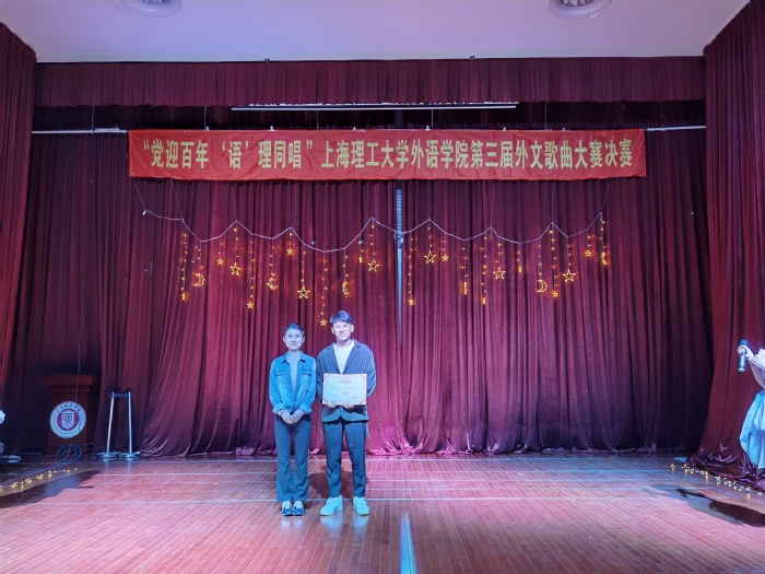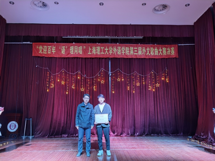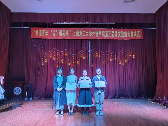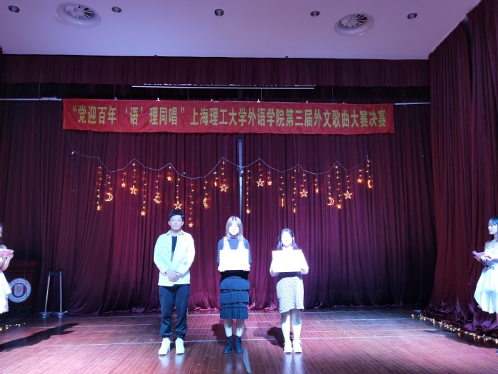 2021年4月16日晚7点,为了庆祝建党100周年,pp电子官方网站入口举办的主题为 “党迎百年,‘语’‘理’同唱”第三届外文歌曲大赛决赛在小礼堂盛大开演。本次比赛的评委有pp电子官方网站入口研究生会执行主席李微,上海市校园好声音六强选手、校园十佳歌手李昕昊,医疗器械与食品安全研究生会执行主席尹佳琪,pp电子官方网站入口团委副书记兼研究生会执行主席袁露。同时,pp电子官方网站入口研究生会指导老师梁作甲也到场指导。
