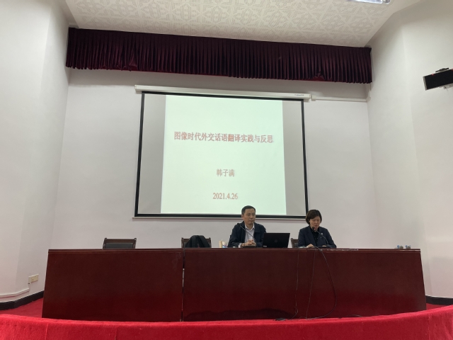 4月24日下午1:30至3:00,教育部翻译专业硕士学位教学指导委员会委员、上海外国语大学语料库研究院研究员韩子满教授应邀到pp电子开展学术讲座,题目为“图像时代外交话语翻译实践与反思”,讲座由pp电子官方网站入口院长刘芹教授主持,pp电子部分教师、全体翻译硕士、部分学硕研究生参与了本次讲座。
