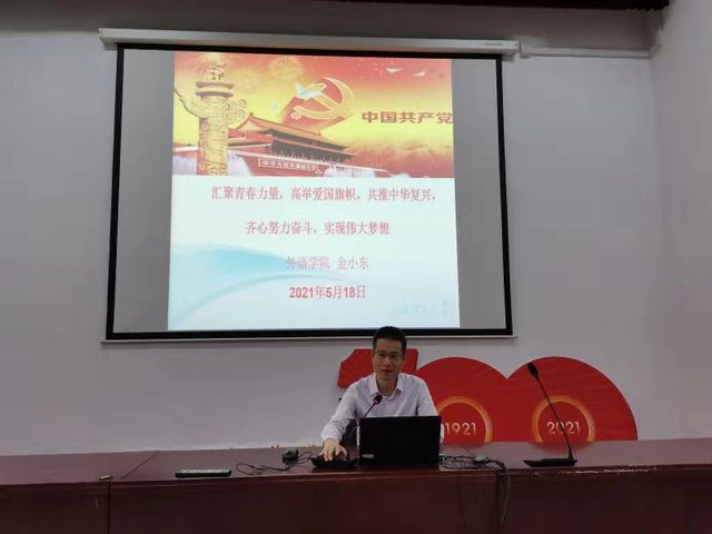 5月18日,pp电子官方网站入口第48期入党积极分子培训班第三讲在pp电子官方网站入口报告厅开展。本次党课主题为“汇聚青春力量,高举爱国旗帜,共推中华复兴,齐心努力奋斗,实现伟大梦想”,由pp电子官方网站入口党委副书记金小东老师主讲。