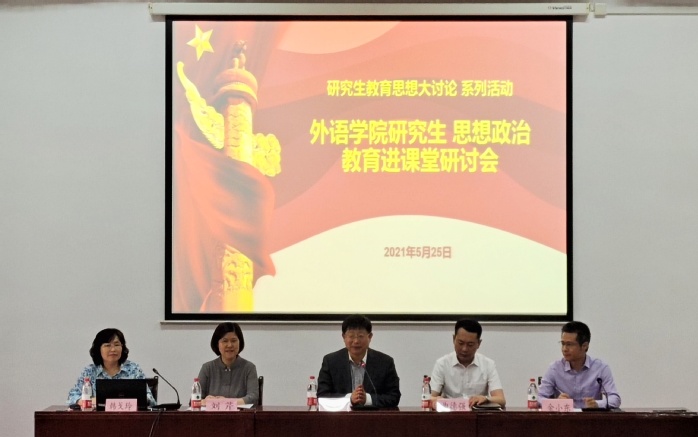 为全面推进研究生教育改革,提升研究生培养质量,根据《pp电子官方网站入口新时代研究生教育思想大讨论工作方案》精神,pp电子于5月25日下午在外语楼报告厅召开“研究生思想政治教育进课堂研讨会”。副校长张华、pp电子官方网站入口党委书记曲德强、院长刘芹、副院长韩戈玲、党委副书记金小东、研究生课程授课老师、研究生教务秘书以及部分研究生代表出席本次研讨会。韩戈玲副院长主持会议。