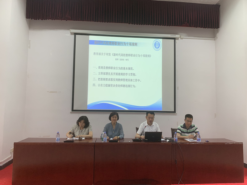 会议首先就pp电子官方网站入口副院长候选人的推选进行了推荐。之后,曲德强书记对全体教职员工进行了师德师风专题教育。曲德强详细解读了《新时代高校教师职业行为十项准则》及《研究生导师指导行为准则》,要求每位教师把《准则》切实落实到实际工作中去。对高校教师师德失范行为,曲德强结合多个典型案例,明确了问责机制、处理程序等有关内容。