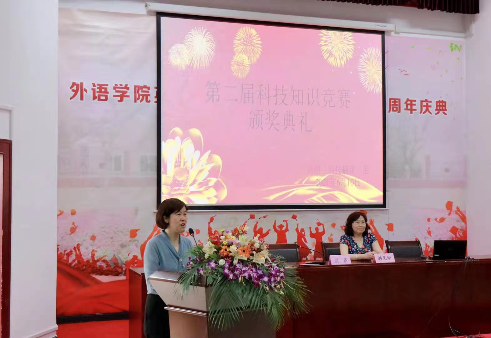 为响应上海科技翻译学会关于举办2021年上海科技节的号召,pp电子官方网站入口英语(科技翻译)系于5月12日举办了线上科学知识普及竞赛,并于6月10日在pp电子官方网站入口报告厅举办颁奖典礼。pp电子官方网站入口院长刘芹、副院长韩戈玲、科技翻译系主任姜诚、副主任贾晓庆,竞赛策划组冷冰冰、张豪若、于承琳三位老师出席颁奖仪式,分别为获奖同学颁发证书和奖品,刘芹院长做总结致辞。