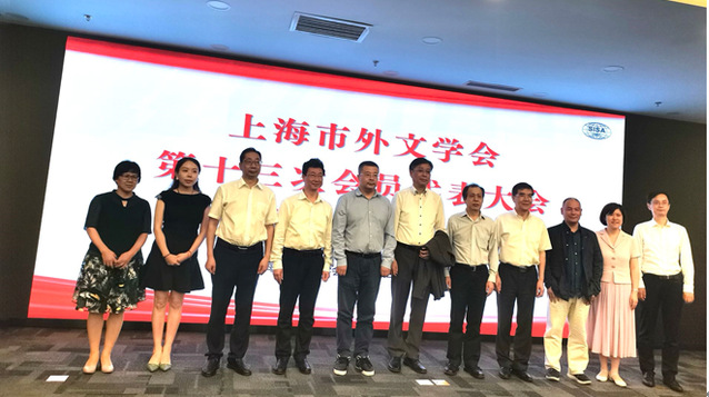 上海市外文学会新任领导班子与教育部教指委和上海市社联领导合影(右二为刘芹)