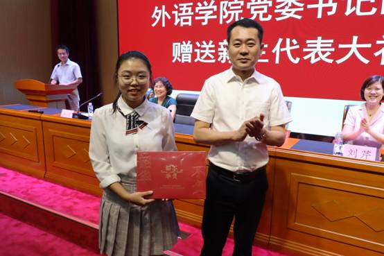 曲德强书记给新生代表汪诗怡赠送大礼包