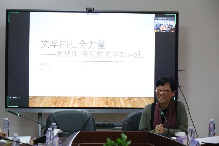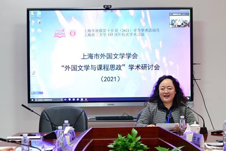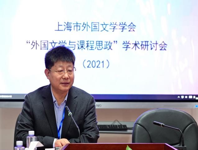 研讨会分上、下半场进行。上半场由上海市外国文学学会张和龙秘书长主持。上海师范大学朱振武教授做了题为“课程思政的融入性、及时性和自然性”的学术报告。朱振武指出:“外国语言文学文化课,是以中国语言文学文化为参照,以外国语言文学文化为主要修习内容,以培养有家国情怀和责任担当的学子为旨归的学习行为,因此思辨与思政应该贯穿整个过程,但这种思辨与思政应该在自然、自如和自在的情况下进行,应该注意呆板说教、生搬硬套甚至简单僵化。”上海外国语大学王岚教授的主旨发言题为“外国文学教学与课程思政的有机融合”。王岚认为,外国文学可以帮助不同国家的人求同存异;文本选择可以多样化,例如非洲文学、一带一路国家的文学等;教师首先须树立正确三观,在生动的文本分析过程中培养学生的使命感、责任感和高尚情操。第三位主旨发言人复旦大学的戴从容教授以诺贝尔文学奖获得者、爱尔兰诗人谢默斯·希尼为例,阐释了文学的社会力量。她指出,希尼的诗歌创作让他在北爱尔兰的政治矛盾中找到了自信和发声的力量;对于个人来说,诗歌是一种自我挑战和心灵升华,对社会来说,诗歌可以起到介入历史、批判现实的作用。