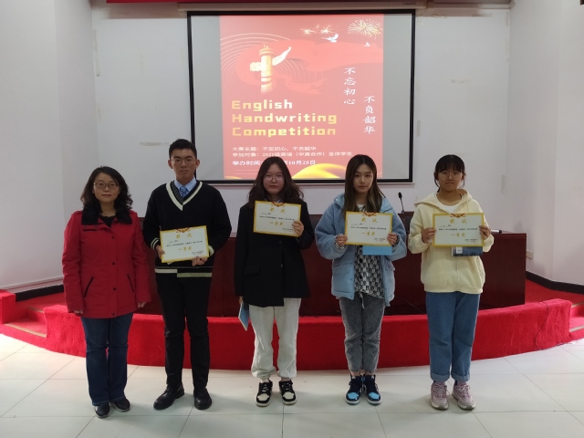 2021年11月8日pp电子官方网站入口英语系(中美合作)第二届英文书写大赛顺利落幕。为庆祝中国共产党建党100周年及pp电子官方网站入口建校115周年,本次大赛的主题定为“不忘初心,不负韶华”。英语(中美合作)专业2021级的全体同学在《综合英语》课程老师的带领下,学习了《习近平谈治国理政》(第三卷、英文版),选取并抄写了感触最深的段落。同学们的英文字体或磅礴大气,或清秀隽丽,行云流水间流淌的是浓浓的爱国之心和爱党之情。坚韧不拔的民族精神与叱咤风云的豪情壮志也都诉诸笔尖,跃然纸上。经过评委老师的集体评选,最终赵若楠、马国华、张乃心、叶南希以及高璐等五位同学获得了本次比赛的一等奖。蒋昕宁等十位同学获得了本次比赛的二等奖。常希玮等二十五位同学获得了三等奖。