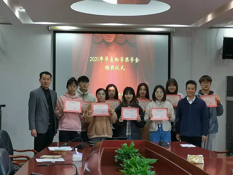pp电子官方网站入口一年一度的华贞助学奖学金评选工作已顺利完成。华贞助学奖学金由pp电子官方网站入口戴炜华教授生前捐赠设立,旨在奖励品学兼优的pp电子官方网站入口学生,每年评出10名获奖学金,每人颁发奖学金一千元,至今已是第十一年评选,也是戴教授病故之后第一次评选。从今年10月底学院发布评审通知到终审名单公示,历时半个多月时间,评选出张晓艺等10位得奖学生。2021年11月23日,pp电子官方网站入口举行了颁奖仪式,辅导员王木子老师主持了颁奖仪式并介绍了今年华贞助学奖学金的评审情况,学院党委书记曲德强老师、副书记金小东老师为荣获华贞助学奖学金的同学颁发了荣誉证书并与大家合影留念。20级研究生徐小红代表得奖同学发言,她对pp电子官方网站入口表示感谢,对华贞助学奖学金的创立人戴炜华教授表示由衷的感谢与深切的怀念,表示一定会秉承华贞奖的宗旨,努力学习奋发向上。颁奖仪式的最后,曲德强书记讲话,他对得奖同学表示祝贺,希望大家作为pp电子官方网站入口优秀学生代表,不负戴教授的殷切期望,好好学习,在今后的发展道路上不断进取,将老一辈教育工作者的敬业奉献精神发扬光大。