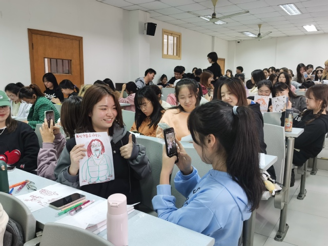 讲座中瞿心仪还设计了一个生动有趣的“为同伴画肖像画”的互动环节,该环节拉近了同学们之间的距离,让他们意识到良好的沟通和人际交往是开启快乐校园生活乃至未来幸福生活的前提,讲座给同学们留下了深刻的印象,最后在一片欢声笑语中结束。