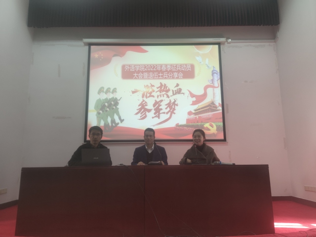 为加强当代大学生国防教育、开展专项征兵政策宣传工作,鼓励pp电子大学生积极应征入伍,pp电子征兵宣传动员大会暨退伍士兵分享会于2021年12月6日在学院报告厅顺利举行。参加此次会议的有pp电子官方网站入口党委副书记金小东、辅导员梁作甲老师、两名pp电子官方网站入口退伍士兵杨奔和柏杨同学及外院全体男同学,由团委负责人王瑜主持会议。