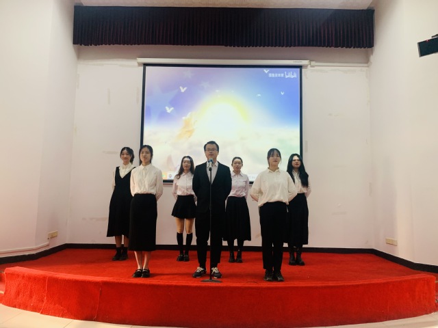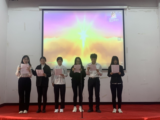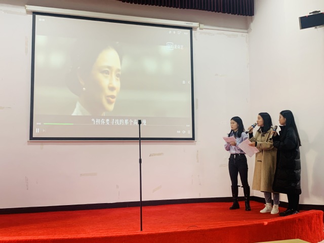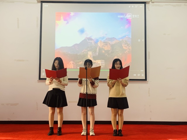 俞璐、张容等人带来的合唱《我和我的祖国》将本次活动推向高潮。祖国,是亿万炎黄子孙生命的寄托,是亿万华夏儿女心灵的浓缩。她们的深情演唱让全场热血沸腾,爱国之魂熊熊燃烧。除了诗朗诵、红歌外,两段配音也十分精彩。杜致强、王悦带来的双人配音《一百年华》,是五四运动宣传片的片头,抒情中带有激昂。韩丽、陈凯丽、王鲜给大家带来了红色主题配音《觉醒年代,女性力量》,她们分别为高君曼、赵纫兰、江东秀配音。配音者富有深情的声音搭配恢弘的伴奏声,令人心颤。