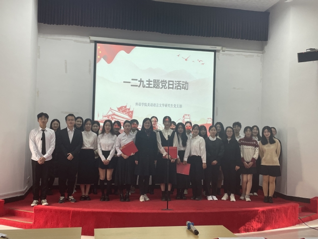 12月8日,英语语言文学研究所党支部开展一二九主题党日活动,纪念伟大的学生抗日救亡爱国运动86周年,旨在充分发挥党员的先锋模范作用,增强基层党组织的创造力、凝聚力和战斗力,强化党员身份意识和责任意识。如今在两个百年的历史交汇点上,一二九运动的豪情已升腾为与时俱进的豪迈情怀;如今在党诞生的百年之际,一二九运动的壮志已凝聚为自强不息的民族精神。