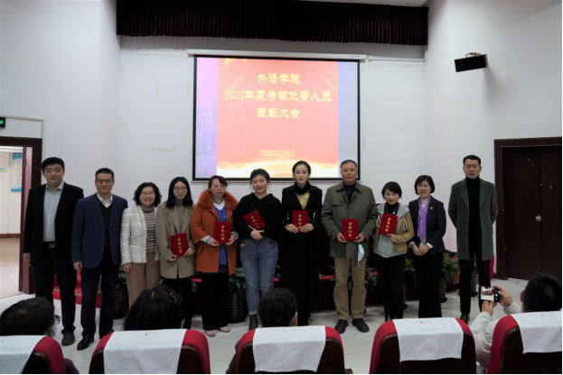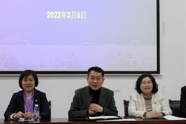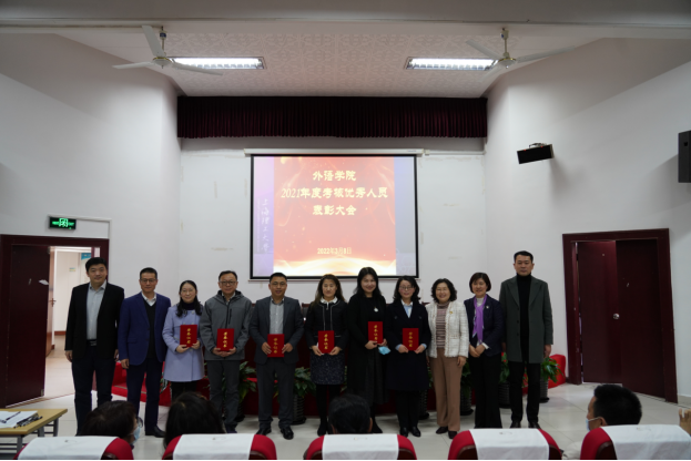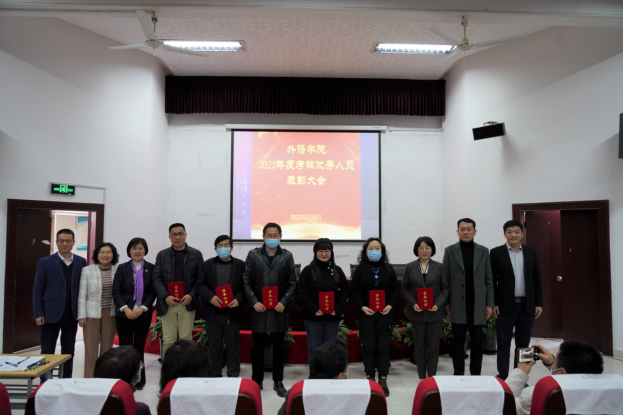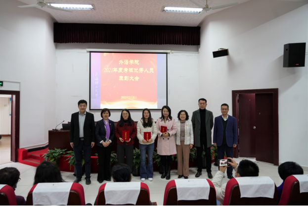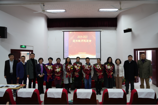 大会最后举行了2021年度考核优秀人员颁奖和2019—2021退休教师欢送仪式。本次会议的召开正逢“三八”国际妇女节,学院领导向全体女教职工送上了节日的祝福。