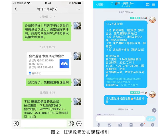 “互动类”课程对师生交流要求较高,任课教师使用一网畅学平台和腾讯会议相结合的方式,通过共享屏幕为学生进行课程知识的传授和讲解,使教学效果尽量接近线下授课。张俊锋、智玉英主讲的《中外科技前沿纵览》、杨一天主讲的《德语写作(2)》、王彦花等主讲的《交互综合英语》课程上,为保证在线教学和课堂教学达到同样的授课效果,老师们纷纷化身为热情洋溢的主播,精心设计课堂任务,积极与同学们进行实时互动,并通过线上作业严格监督同学们的复习情况,从各个环节保证了同学们的学习效果。
