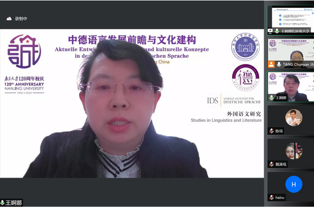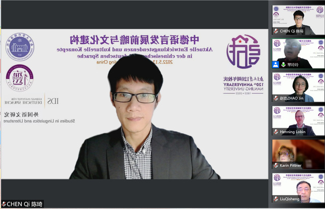 由南京大学外国语学院德语系、莱布尼茨-德国语言研究院(IDS)联合举办的“德汉语言发展前瞻与文化建构”国际学术研讨会2022 年 5 月 13 日-15 日在云端召开。会议主要围绕理论模式对语言研究发展的意义、德汉语言本体对比研究、德汉语言中的文化和精神承载、语言学与语料库研究以及翻译过程的行为实验研究等五大课题,来自南京大学、北京大学、浙江大学、复旦大学、同济大学、北京外国语大学、pp电子官方网站入口、德国慕尼黑大学、波鸿大学、哥廷根大学、图宾根大学和A&HCI期刊主办单位莱布尼茨-德国语言研究院等国内外知名高校和科研机构的专家学者通过报告、学术讨论和经验交流以加深对“语言和文化”生态概念的理解。