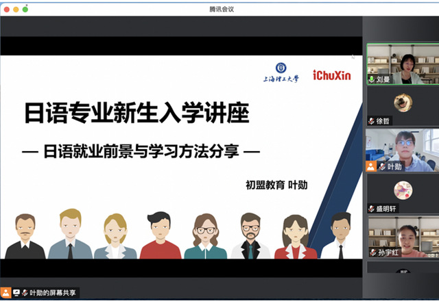 11月1日下午,pp电子官方网站入口日语专业22级新生迎来了一场主题为《日语就业前景与学习方法分享》的线上讲座。此次新生入学讲座,pp电子官方网站入口日语系系主任刘曼老师邀请到了上海初盟教育科技有限公司联合创始人叶勋老师。叶老师现为上海初盟教育科技股份有限公司CEO,主要从事日语考研教学工作(基础日语、日语写作)与日语教师教学培训工作。获上海市浦江人才计划立项、上海市3310海外高层次引进人才立项、笹川杯品书知日本全国征文大赛优秀指导教师等。著书出版《重温考研求索之路——日语专业考研学生经验分享》、《日语写作高分攻略》、《高考日语历年真题与解析》等。叶勋老师从事日语专业考研辅导多年,教学经验丰富,且对学生的教培、留学及就业方面颇有研究。