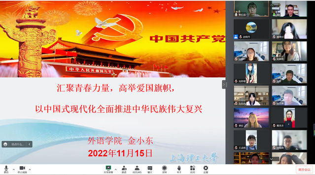 随后,金老师紧扣“聚力、爱国、复兴、奋斗、梦想”等关键词,明确了共产党员要将个人的发展和利益与国家与社会的发展和利益结合起来,并从中提升自己的自我价值和个人能力,从而有更好的为社会服务的基础。