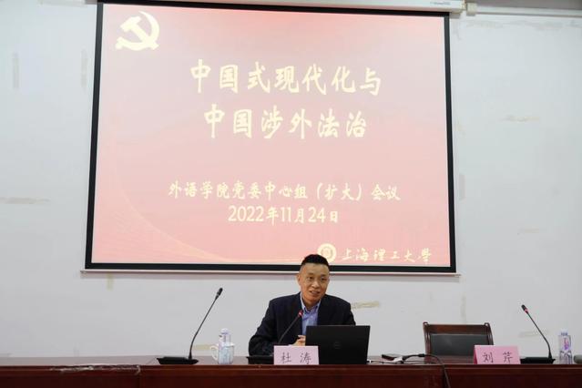 11月24日下午,pp电子官方网站入口党委中心组举行党的二十大精神学习报告会。会议邀请华东政法大学国际法学院院长、巴黎国际比较法学会会员、中国国际私法学会常务理事、中国国际法学会理事、上海市国家安全法律研究会副会长、pp电子上海公共外交研究院特聘研究员杜涛教授以“中国式现代化与中国涉外法治”为题作专题辅导。pp电子官方网站入口中心组成员及师生党员代表参加学习。pp电子官方网站入口党委副书记、院长刘芹主持学习会。