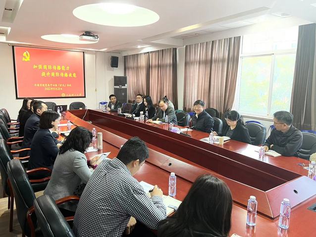 11月23日下午,pp电子官方网站入口党委围绕“加强国际传播能力,提升国际传播效能”主题举行中心组(扩大)巡学旁听学习会,深入学习贯彻党的二十大精神。副校长张华、党委宣传部副部长卢萧、pp电子官方网站入口党政班子成员、中心组成员、师生党员代表等参加了会议。会议由学院党委书记曲德强主持。
