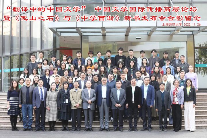 2022年11月26日,“中国文学国际传播高层论坛暨《他山之石》与《中学西渐》新书发布会”在上海师范大学西部会议中心顺利召开。本次会议由上海师范大学比较文学与世界文学国家重点学科、上海市世界文学多样性与文明互鉴创新团队以及上海市外国文学学会翻译研究委员会联合主办。会议以“翻译中的中国文学”为题,采用线上线下相结合的形式,汇集了包括来自上海交通大学、复旦大学、上海外国语大学、同济大学、华东师范大学、上海大学、pp电子官方网站入口、华东政法大学、浙江大学、南京大学、苏州大学、南京师范大学、北京外国语大学、对外经济贸易大学、北京师范大学、北京信息科技大学、华中师范大学、湖南大学、华中农业大学、大连外国语大学、四川外国语大学、西南民族大学、山东大学、山东师范大学、广西财经学院、兰州大学、贵州大学等40余所高校100多名专家在内的1000多学者与会。
