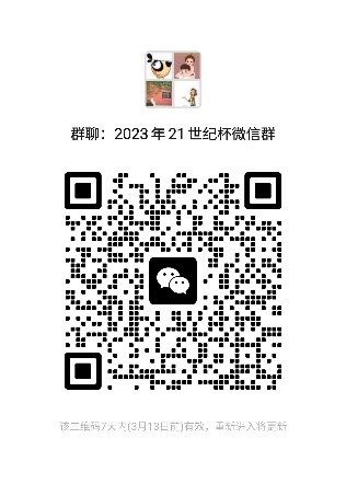 所有参赛选手均需注册登录活动线上平台,填写个人资料后,上传参赛作品。同时,扫码加入2023年21世纪杯微信群,以获取相关指导及比赛通知。完成上述两步即视为报名成功。