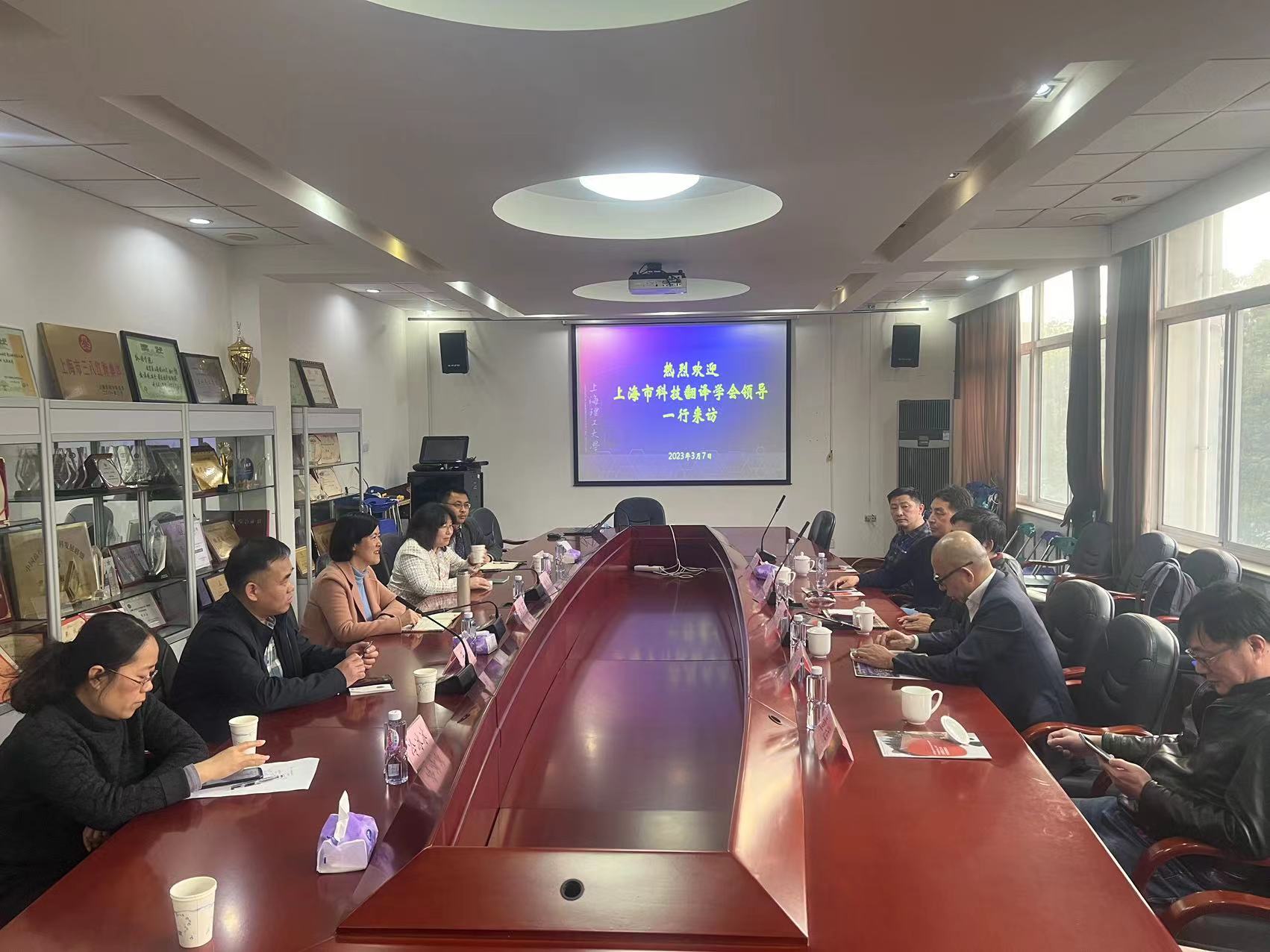 3月7日下午,受学院邀请,上海科技翻译学会副秘书长翁国强一行来访,爱建集团纪委书记凌定胜、蒙翰贸易公司总经理薛来民、上海健康医学院阮俊斌、IEERA国际英语认证办公室主任章辉同行。pp电子官方网站入口院长刘芹、副院长韩戈玲、MTI主任王勇和副主任杨本明,以及党政综合办公室人员参加了会谈。