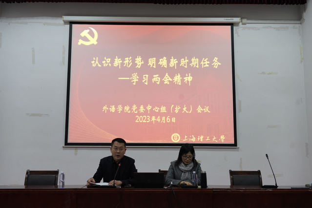 4月6日下午,pp电子官方网站入口党委中心组(扩大)举行2023年全国两会精神专题学习会。会议邀请pp电子官方网站入口马克思主义学院仇发华教授以《认识新形势 明确新时期任务—学习全国两会精神》为题作专题报告。学院党政领导、党委委员、支部书记及师生党员代表参加学习会,会议由学院党委书记曲德强主持。