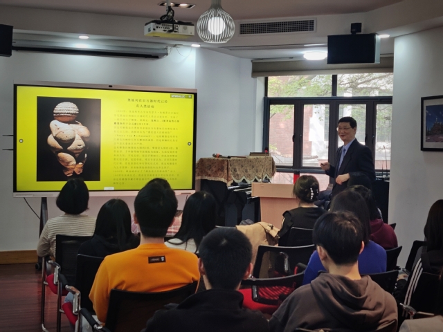 讲座伊始,贾建新参赞图文并茂地介绍了奥地利的历史概况和基本国情,接着结合自己在驻奥地利大使馆的多年工作经历,通过两国在音乐、绘画等文化艺术领域展开的具体活动介绍了中奥历史上的文化交往、中奥外交关系的发展历程以及中奥外交关系与文化交流的现状。贾参赞指出,在对外交流时要善于发现不同文化之间的“共通点”,从“共通点”入手,能够更好地“讲好中国故事,传播好中国声音”。最后,贾参赞鼓励同学们努力学习,打好语言的基础,扩大自己的知识面,全面提高自己各方面的能力,为中德以及中奥文化交流贡献自己的力量。