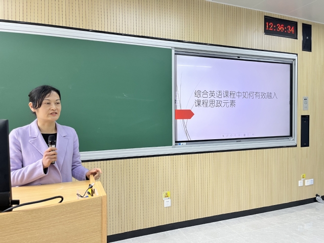 在黄芳主任发言结束后,拥有丰富课程思政建设经验的王晨老师和郏莹老师就“大思政”格局下课程思政建设的理论与实践,以文化类课程“中国文化”和技能类课程“综合英语”为案例,向与会教师分享了她们在课程思政教学过程中的感悟与心得。与会老师一致认为,两位分享老师的发言为之后自己所任课程的思政教育实施提供了新思路和新视角。