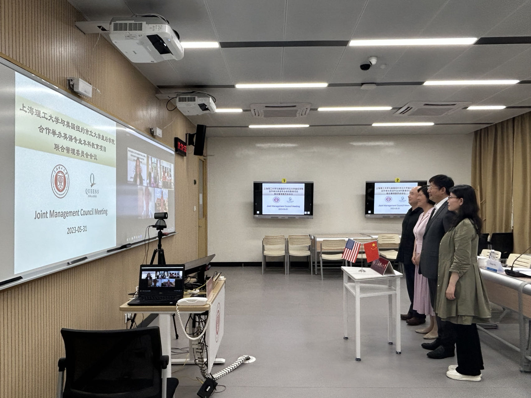 5月31日上午,pp电子官方网站入口中外合作办学项目—pp电子官方网站入口与美国纽约市立大学皇后学院合作举办的英语专业本科教育项目联合管理委员会会议在学校智慧教室召开。此次管委会会议采取线上视频会议的方式。校长丁晓东发来致辞,副校长张华主持会议,美国纽约市立大学皇后学院校长Frank H. Wu、副校长兼代理教务长Patricia Price、艺术与人文学院院长William McClure、国际交流办公室执行主任Patrick O’Connell、项目外方负责人Tao Wang,pp电子官方网站入口院长刘芹,国际交流处和pp电子官方网站入口相关负责人参加会议。