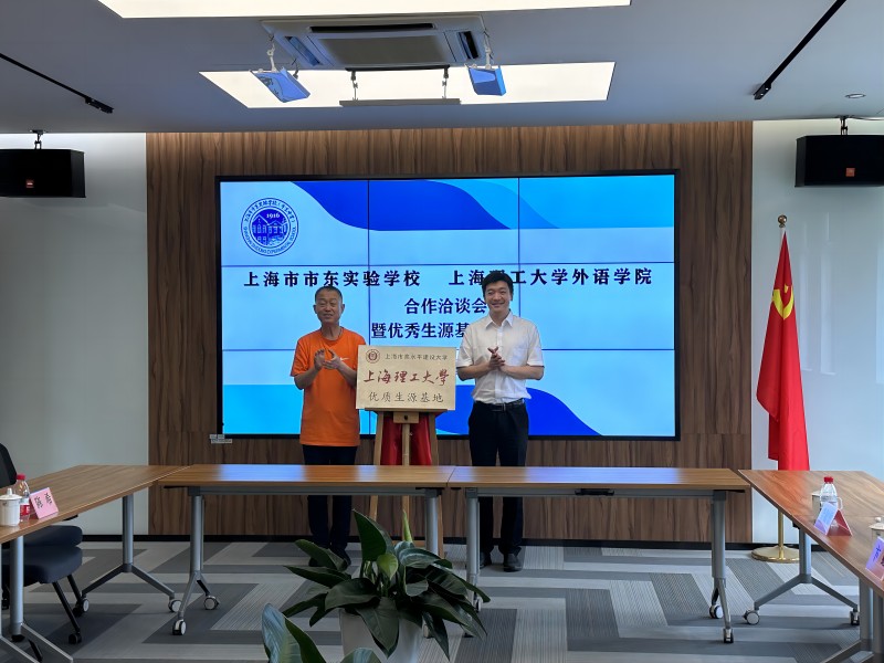 2023年5月31日上午,pp电子官方网站入口副院长张乐、日语系主任刘曼、德语系主任卞虹、教务办主任李敏敏、教学秘书曹嘉航赴上海市市东实验学校调研,市东实验学校校长沈洪、党总支书记徐隽、副校长黄丽芳、教导主任陈希、德语教研组长吴清出席。双方共同签署了“pp电子官方网站入口优质生源基地建设协议书”,并隆重举行揭牌仪式。