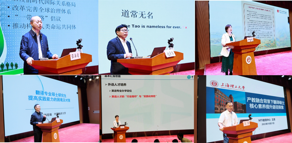 中国译协常务副会长、中国翻译研究院副院长黄友义教授以“‘翻译中国’——推动翻译人才培养向高质量发展”为题,指出“翻译中国”是当今中国译者必须面对的一项光荣历史使命,强调翻译要服务国家发展战略,翻译人才培养与推动国际传播一样是全社会的任务,并用生动的翻译实例说明 “翻译中国”的重难点。广东外语外贸大学翻译学研究中心主任赵军峰教授以“新时代翻译教育中的产教融合:理念、原则与进路”为题,结合MTI评估指标、研究生培养方案修订中遇到的问题,探讨翻译4.0时代产教融合的重要性和操作性。上海大学国学双语研究院院长赵彦春教授以“善译之道:语言的奥秘与翻译的智慧”为题,用生动浅显的语言,阐释如何从形而上学的高度审视汉英两种语言系统,洞悉语言的奥秘,统摄原文的“意旨”“神情”“语气”,从而实现“善译”。中国政法大学钱端升讲座教授张法连教授以“如何讲好中国法治故事”为题,用鲜活的法律翻译案例阐述学好法律外语,做好法律翻译,讲好中国法治故事在促进法治文明的交流互鉴、推进国际传播效能中的不可或缺性。中国外文局外文出版社英文部副主任刘奎娟以“‘三进’工作和翻译人才培养”为题,探讨了“三进”工作在我国高等教育人才培养中的重要意义,并围绕产教融合背景下翻译人才的培养提出针对性建议。中国海洋大学外国语学院名誉院长杨连瑞教授以“翻译专业硕士研究生提高实践能力的困境及对策”为题,针对全日制翻译专业硕士培养面临的诸多困境,从教学模式、保障条件和产教融合育人三方面提出聚焦实践创新能力培养问题。中国民航大学外国语学院院长张艳玲教授以“守正创新,和而不同,民航特色翻译人才培养模式的中航大实践”为题,分享探索构建“民航特色翻译人才实践化培养模式”的实践过程,提出要加强国际化复合型高端外语人才培养和中国民航对外话语创新研究。pp电子官方网站入口MTI教育中心主任王勇教授以“产教融合背景下翻译硕士核心素养提升途径探索”为题,结合pp电子翻译硕士研究生培养的实践探索,探讨产教融合在优化翻译专业师资队伍、提升人才培养质量等方面的积极作用和未来趋势,为本次论坛主旨报告画上圆满句号。