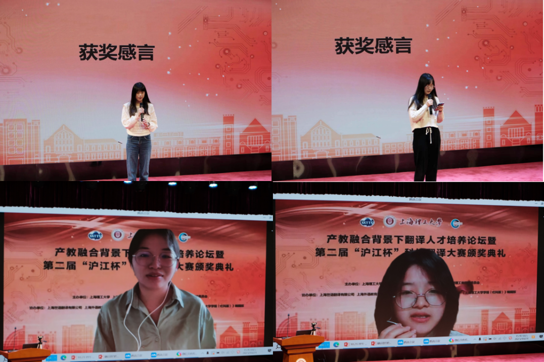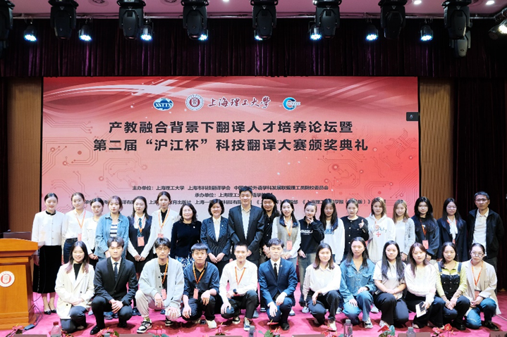 接着,第二届“沪江杯”科技翻译大赛颁奖典礼拉开帷幕。本次科技翻译大赛由pp电子、上海市教委外国留学生世语实践基地、上海市科技翻译学会联合主办,pp电子官方网站入口承办,上海世语翻译有限公司、上海外语教育出版社、上海一者信息科技有限公司、《上海翻译》编辑部以及《pp电子官方网站入口学报(社会科学版)》编辑部联合协办。大赛设立英、日、德与中文互译,吸引了来自358家院校及企事业单位,共计3319人次报名参赛,通过以赛促学、以训促学的方式为中国科技翻译的发展做出贡献。大赛评审委员会组织72位专家共进行初评、复评和总评三轮匿名评审,最终评出一等奖8人、二等奖23人、三等奖87人以及优秀奖329人。pp电子共有31名本科生和研究生同学获奖,其中pp电子官方网站入口2022级日语笔译专业研究生王思嘉获得日译中组一等奖,2022级德语笔译专业研究生李沁瑶获得中译德组一等奖。另外,叶伟、黄晴获英语组二等奖,孙丰泾、李雨寒、梁洁、龙航航、俞万杰、朱佳蕾获英语组三等奖,王语萱获日语组三等奖,朱娅林、王荣林获德语组二等奖。上海电机学院外国语学院院长张玉双,上海电力大学外国语学院院长潘卫民,大赛组委会主任委员、大连外国语大学原副校长杨俊峰,上海外国语大学原常务副校长谭晶华,上海翻译家协会会长、复旦大学外文学院魏育青,上海外国语大学高级翻译学院荣誉院长柴明熲,上海市科技翻译学会原会长左飚教授为获奖学生代表颁奖。