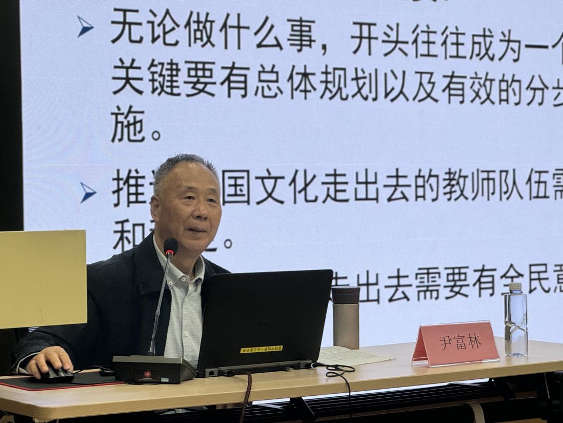 2023年10月27日上午,pp电子官方网站入口邀请优秀校友、原南京工业大学pp电子官方网站入口院长尹富林教授于管理学院四楼辅楼报告厅举行“我与中国文化走出去”主题讲座。pp电子官方网站入口党委书记曲德强、校友工作联络处副处长司徒唯尔出席本次讲座,讲座由pp电子官方网站入口党委副书记金小东主持。