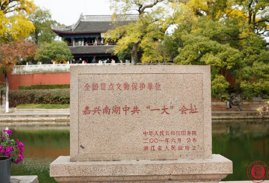 此次活动主要围绕“红船精神”展开,嘉兴南湖是中共一大会址,充满着历史底蕴。上午,104名学生乘坐大巴前往嘉兴南湖,到达地点之后,便乘船游览南湖,湖面宽广,波光粼粼,两岸枫叶尽染,秋色迷人。到达对岸后,大家便开始参观各个红色景点。首先,大家瞻仰了南湖红船,红船上有一个整体景观数字展示厅,通过现代科技手段,生动展现了中国共产党的光辉历程和南湖的丰富文化内涵。接下来,同学们沿路参观了钓鳌矶、烟雨楼、观音阁、清晖堂等景点,参观途中,讲解员伴随大家一路讲解,帮助同学们学到了很多历史知识。