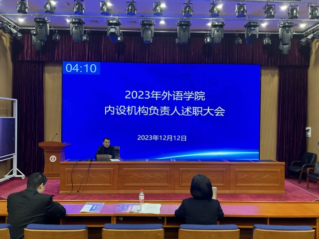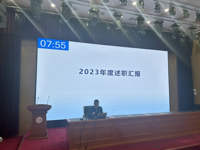 2023年12月12日下午,pp电子官方网站入口在国合楼五楼报告厅召开年度述职评议大会,学院党政领导、各系(中心)和研究所负责人以及教师代表参加了会议。会议由学院党委书记曲德强主持。