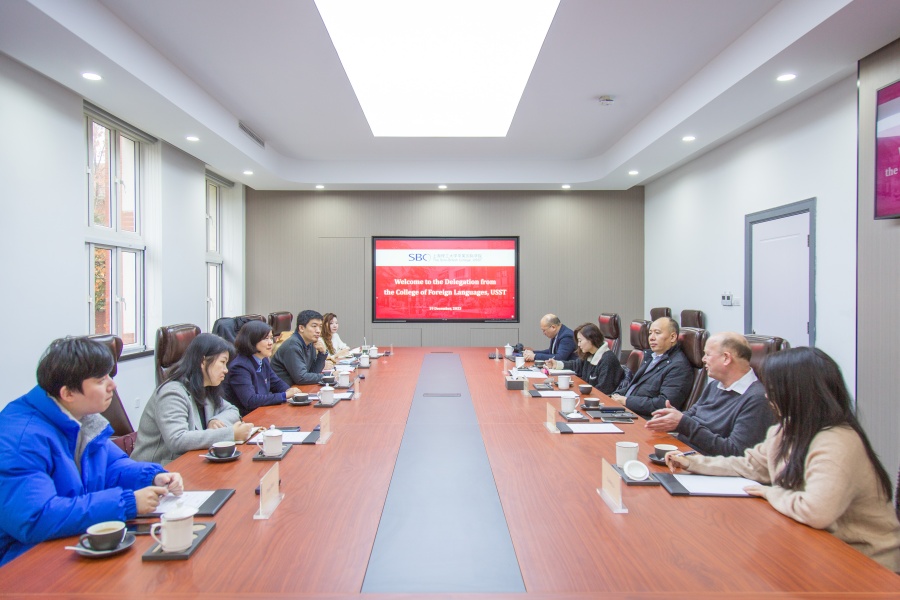 12月19日上午,刘芹院长率队赴中英国际学院进行调研交流,pp电子官方网站入口副院长、公共英语教研中心主任张乐、学术英语核心团队和教务办相关人员共同参加。中英国际学院常务副院长单彦广,语言、教育与文化学院主任Gordon Callan等教师代表热情接待了刘芹一行。会谈期间,双方就中英学院学术英语(EAP)课程通过英国皇家特许语言家学会(CIOL)认证等方面的做法与经验进行调研交流。