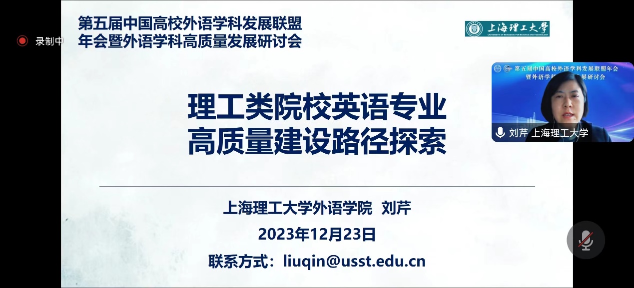 刘芹院长应邀在分论坛二“高质量外语专业建设”中作了题为“理工类院校英语专业高质量建设路径探索”的发言。她介绍了pp电子国家级一流本科专业建设点“英语”的历史底蕴和发展历程,从夯实复合型师资队伍和开设复合型课程两方面详细阐述该专业在实施“英语、科技、商务一体两翼教学模式”中的建设路径,并以笔译和口译课程为例,探索了大数据融入课程教学和人才培养过程的可行性和初步成果。